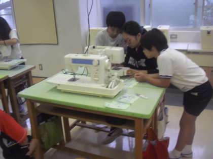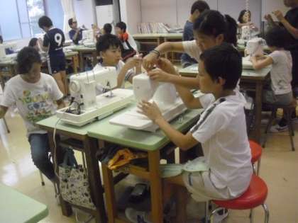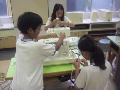 金曜日は、5年生で家庭科の授業があります。初めてのミシンの学習で、練習布を使っていろいろな縫い方を練習します。まずは、糸を通すところから始めます。悪戦苦闘しながらも、友達同士助け合いながら進めていました。