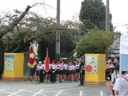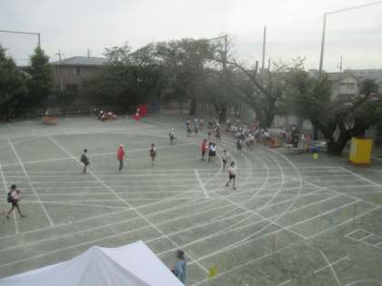 子どもたちは教室で着替えを済ませました。担任の先生による健康観察を終えて、校庭に移動します。そして、いよいよ入場です。