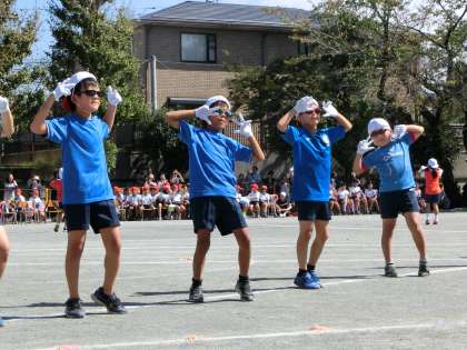 3年生の表現種目は、再ブレークした『め組のひと〜2018Ver.』の曲に合わせての、かっこよいダンスです。自分たちで振り付けも考え、決めのポーズでは、「めっ!」と元気のよいかけ声が素敵でした。