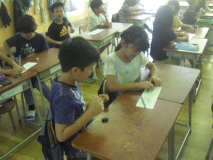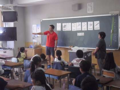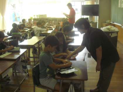 今日は、1・2年生の教室で、外国語活動の授業が行われました。カードを使いながら、ALTのアグネス先生と担任の先生が協力して、子どもたちに楽しく英語に親しませます。子どもたちはみんな積極的に活動に参加し、友達とも自信をもっているやりとりする様子がうかがえました。