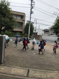 出発式では、今日のめあてや約束ごとを確認し、いよいよ出発です。お見送りの校長先生やお母さん方にあいさつをして、8時30分学校を出ました。