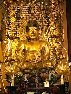 ご本尊の釈迦牟尼如来を見学します。輝いています。