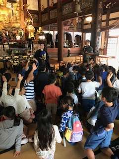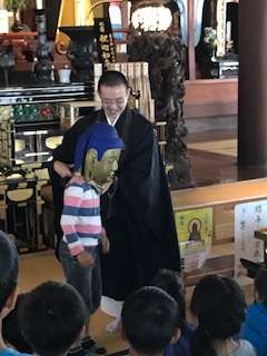 年中行事「お面被り」の説明を丁寧にしていただき、特別に被らせていただきました。さて、私は誰でしょう?