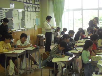 1時間目の社会科の授業で、4年2組では初任者の小林教諭が研究授業を行いました。「地域の発展に尽くした人々」の単元で、玉川上水についての導入の授業が行われました。たくさんの資料をもとに、江戸のまちで玉川上水が必要になった理由について考える授業でした。授業後に参観した先生方からは、授業の進め方や子どもへの発問などに関してのアドバイスをいただきました。今後も小林教諭は、授業改善に努力していくことを誓いました。4年2組の子ともたちも先生も、しっかり成長している姿が見られた授業でした。