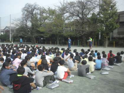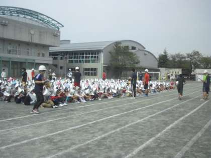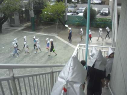 10月の避難訓練は、職員室から出火したという想定で行われました。放送機器を使わずに、職員が各フロアを回って火事を伝えるという、いつもの訓練とは違った状況でしたが、子どもたちは慌てず先生の指示をしっかり聞いて行動できました。