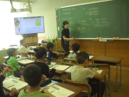4時間目の3年生は、算数少人数の授業です。習熟度別の3つのコースに分かれて勉強します。「長さ」の学習のまとめで、各コースとも定着問題に挑戦していました。今週中にまとめのテストが行われるようです。習ったことをしっかり復習しておきましょうね。