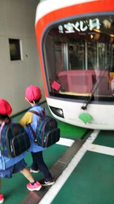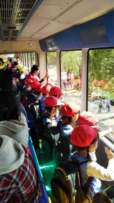 モノレールに乗りました。下を歩いている他の学校のお友達に手を振りながら、景色を楽しみました。