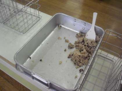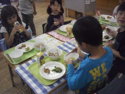 明日20日は、八幡山小学校の開校記念日です。今日の給食は、58周年をお祝いして、お赤飯が出ました。子どもたちの大好きな唐揚げと共に、どのクラスもおかわりをして、モリモリ食べていました。
