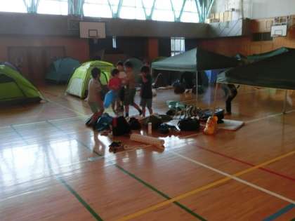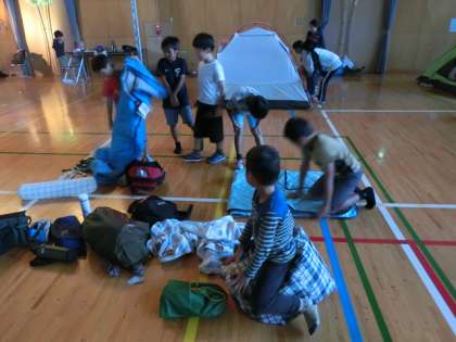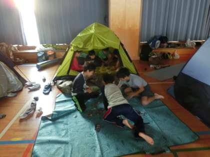 6時には、ほとんどの子が起きて、活動しています。寝袋を片付ける子、早々にカードゲームで遊んでいる子など、元気いっぱい、パワー全開です。