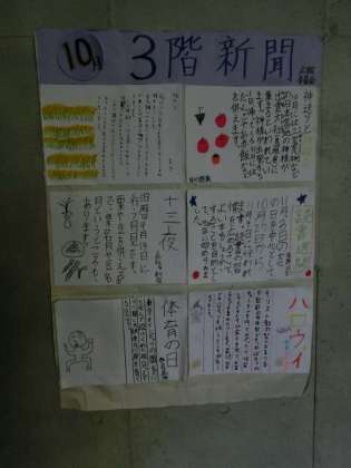 広報委員会が作成した10月の新聞が掲載されています。「紅葉狩り」・「ハロウィン」・「読書週間」などの季節の話題が紹介されています。各フロアに掲示していますので、ご来校の際に、ぜひご覧なってください。