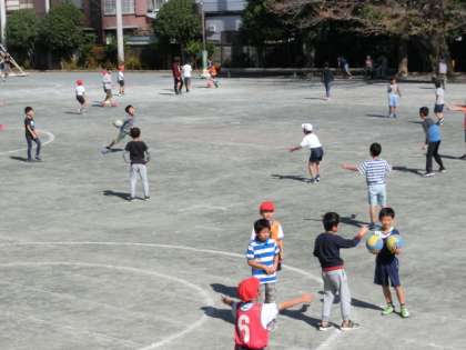 中休みの校庭では、子どもたちが元気に外遊びをしています。朝夕の冷え込みがありますが、日中はぽかぽか陽気で、その遊びには絶好のコンディションです。学級園でも、楽しそうに虫探しをする子どもたちでいっぱいでした。でも、外から戻ったら、手洗い・うがいを忘れずにしましょうね。