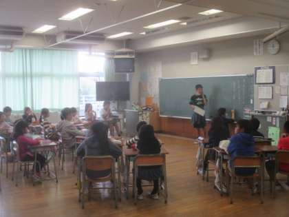今日の4時間目は、2学期最初の「なかよし学級」です。全学年が入った縦割り班での活動です。今日は、リーダーの6年生が中心に、12月14日に行われる「お店やさんを開こう」の会の話し合いを行います。各班、まずは出席の確認をします。