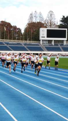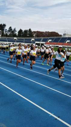連合運動会のスタートは、エンジョイランニングです。しっかり、身体を温めましょう。
