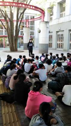 連合運動会から、学校に戻って来ました。6年の先生から、良く頑張ったこと、これからの学習に生かしてほしいこと、いい思い出が増えたことのお話がありました。最後に、お互いやサポートしてくれた先生方に「ありがとうございました。」の挨拶をして解散しました。