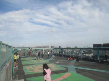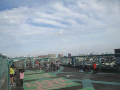 午後5時間目の2組の理科は、「雲と天気の変化」の単元で、雲の観察をしました。屋上に出て、秋の空をみんなで観察します。屋上には爽やかな秋の風が吹いていて、子どもたちは気持ちよさそうに、青空を見上げていました。