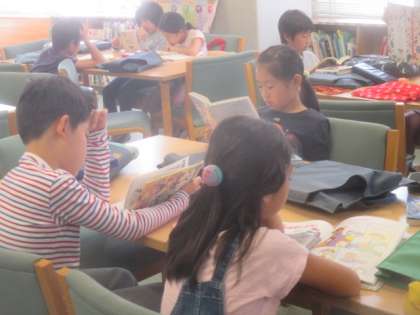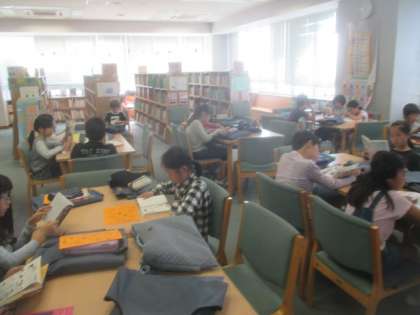 2時間目の3組は図書室で読書です。それぞれ、じっくり自分の興味のある本を読みます。授業の終わりには、司書の先生に読み聞かせをしていただきました。「読書の秋」です。いろいろな本との出会いを大事にしながら、読書に親しんでほしいものです。