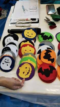 てづくりひろばでは、ハロウィーンの小物づくりやシュロのバッタづくりなど季節感のあるものも人気でした。整理券で、順番待ちのコーナーもありました。何を作ろうかな?