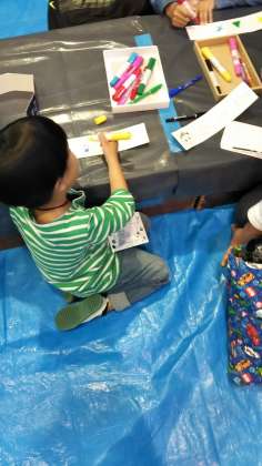上北沢小学校のてづくりひろばには、八幡山幼稚園のお友達も沢山参加していました。地域の方に丁寧に教えて頂き、真剣にやり方を教わっていました。どんな作品が出来たかな?