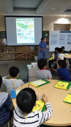 4年生は、中央防波堤埋立処分場に到着しました。施設の中でゴミの処分についての説明を聞きました。後50年で一杯になってしまうそうです。もっと長い期間処分場が使えるよう、皆さんもゴミを減らすように意識してほしいというお話がありました。