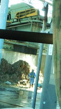 粗大ごみ破砕処理施設、不燃物ごみ処理施設を見学しました。破砕の大きな機械が水と一緒にごみを砕いていました。
