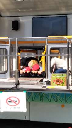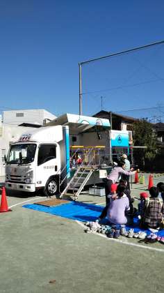 八幡山小学校で幼稚園の起震車体験が行われました。年少組さんは、保護者と一緒の体験です。