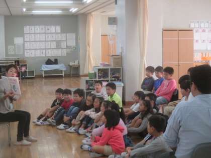 火曜日の朝です。今朝も1〜3年生の教室では、読み聞かせのためにお家の方々が来てくださいました。お父さんも来てくれて、子どもたちはとてもうれしそうです。今日はどんな本を紹介してくれるか 楽しみですね。