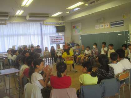 学級の時間を使って、高学年の教室では、ミニお楽しみ会が開かれていました。クラスの全員でフルーツバスケットを行い、友達同士の親睦を深めます。わずかな時間でしたが、子どもたちは楽しいそうに活動していました。