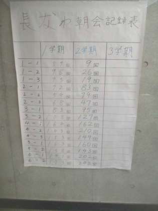 昨日の体育朝会で行った長縄チャレンジの結果が貼り出されました。今回は、6年生をおさえて、なんと4年2組が210回で1位となりました。普段からの取り組みの成果ですね。おめでとうございます。これからもクラスで団結し、さらに記録の更新を目指してください。