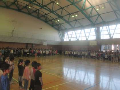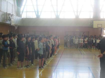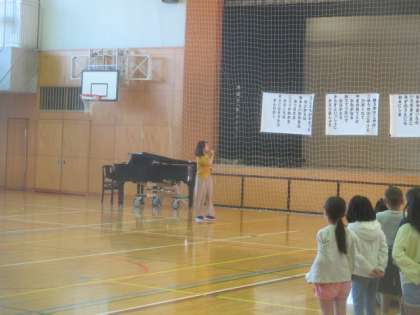 今朝の音楽朝会の課題曲は、「もみじ」と「ゆうやけこやけ」です。秋をしみじみと感じながら歌います。11月に入り、めっきり秋めいてきて、校庭の木々も色づいています。季節の移り変わりを味わいながら、みんなでしっかり歌っていました。