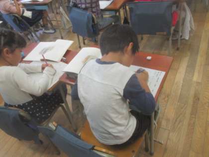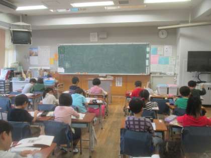 1組の国語の授業は、「あいしているから」の単元。教科書の文章をきれいに清書し、それを使って、友達同士で読み合いをしました。友達が一生懸命読んでいるのを聞いたり、友達に聞いてもらったりして、作品のよさを感じることができたでしょうか。