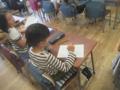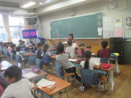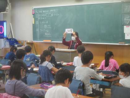 1組の4時間目は、算数の授業。かけ算九九の習熟を、ビンゴゲームで楽しく取り組みました。先生の出す問題に素早く答えて、マス目がそろったら、「ビンゴ!」です。かけ算九九は、この先の算数の学習には不可欠な知識です。繰り返し練習して、しっかりマスターしていきましょうね。