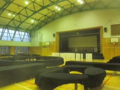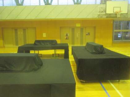 今週から体育館が使用不可となり、展覧会の準備が進められています。今日の放課後は、5年生が展覧会会場の設営を行いました。ランチルームなどからテーブルが運ばれ、作品の展示の下準備が完了しました。いよいよこれから作品を搬入していきます。