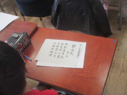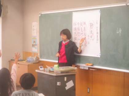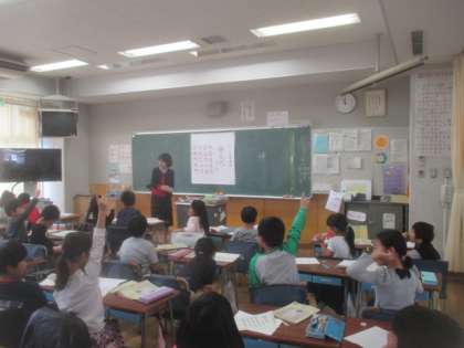 2組の4時間目は、坂口先生による教科「日本語」の授業です。今日は、李白の漢詩の勉強をしました。難しい漢字も、一文字ずつ分けて考えながら、詩の内容を想像します。あとは繰り返し大きな声で読むことで、日本語の響きやリズムを味わっていきます。2年生でも、難しい漢詩をすらすら読むことができていました。