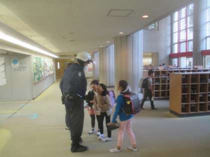今日は、全学年4時間授業で下校となります。帰りの昇降口には、八幡山駐在所の武藤巡査部長さんが、子どもたちを見送りに来てくださいました。いつも子どもたちの安全を気にかけてくれる優しいお巡りさん。これからも、八幡山小の子どもたちをよろしくお願いします。