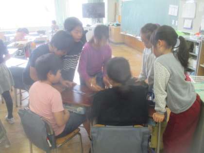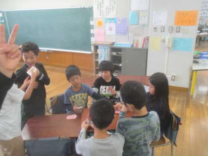 それぞれの教室では、みんなでカードゲームをやったり、オープンスペースで工夫して遊んだりしていました。