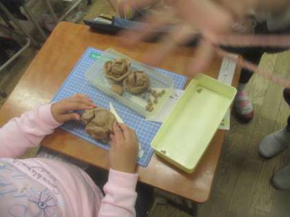 今日は1日雨のようです。残念ながら、昼休みも室内で過ごすことになりました。1年生の教室では机を後ろに下げて、みんなで室内ゲームで遊んだり、粘土遊びをしたりして、楽しく過ごしていました。