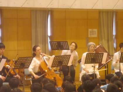 CDやレコードとは違う、生の楽器の音色を間近で味わえたことは、子どもたちにとてもよい経験となります。後半は全員で『歓びの歌』を歌い、最後に6年生の代表児童のあいさつで2回の公演は終了しました。