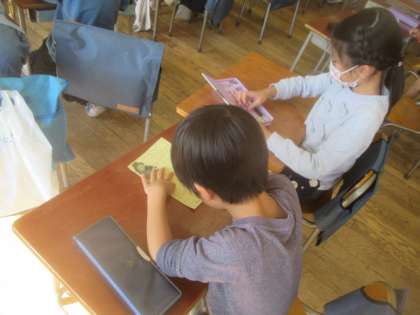 早速1年生は、今日のようこそ先輩コンサートの感想と、講師の方々へのお礼の手紙を書きました。プロの演奏家の生演奏に、初めて見る楽器もたくさんあったようで、子どもたちは素直に感じたことや思ったことを手紙に込めて、担任の先生に読んでもらっていました。