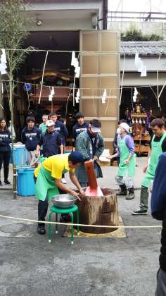 つき手は、町会の方や近隣大学の日大ウエイトリフティング部、明治大学の自転車部、アメフト部などの皆さんです。