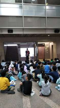 センターの担当の方からの説明を聞いて、「プラネタリウム」と今年完成した「英語学習」の部屋に分かれて、学習します。