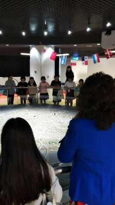 まず、エミリ先生とご挨拶です。さぁ、英語学習のスタートです。