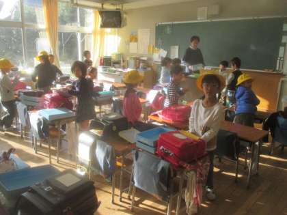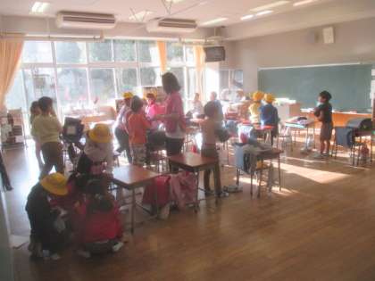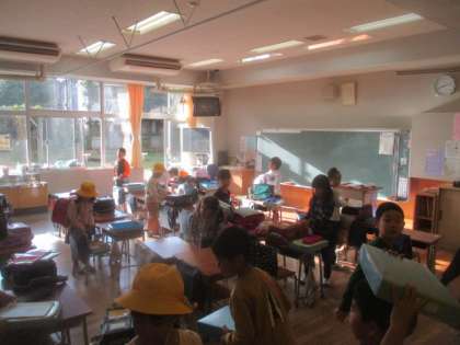 日ざしがまぶしい、爽やかな朝となりました。今朝は体育朝会があります。登校するなり、1年生はすぐに体育着に着替えます。8時30分スタートに間に合うように、みんな必死です。
