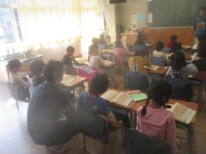 今日も1年生の教室には、小1サポーターの方々が、授業のお手伝いをしてくださっています。忙しい中、毎日数名の方々に来ていただいています。いつもありがとうございます。