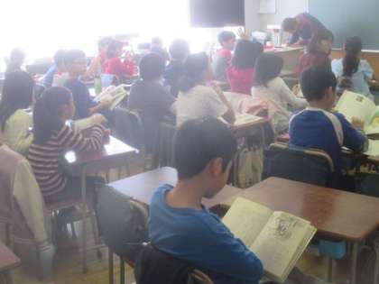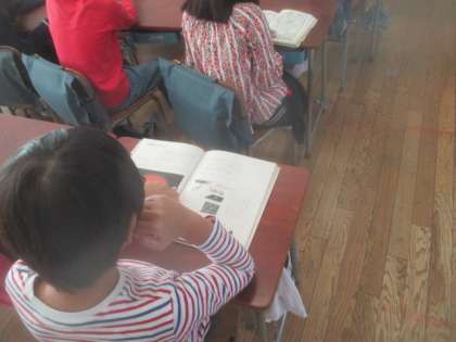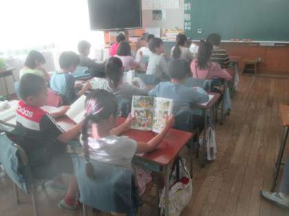 木曜日の朝は、図書タイムです。各クラス、静かに自分の好きな本を読んで過ごします。およそ10分あまりですが、じっくり本の世界に浸ることで、落ち着いて1時間目に入っていきましょう。