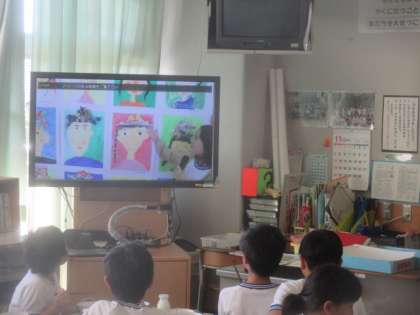 今日の昼の放送で、代表委員の児童が用意した、展覧会の紹介ビデオが流されました。各学年の作品の見どころを、代表委員の児童が説明しています。ビデオを見ている子どもたちも、自分たちの作品が映し出されるだびに大騒ぎでした。明日からの展覧会が、さらに楽しみになりましたね。