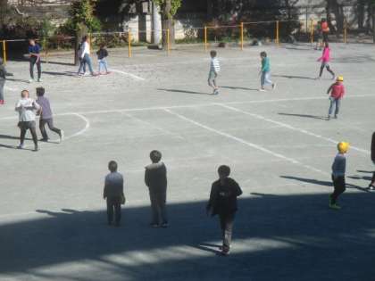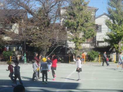 今日も気持ちのよい秋晴れになりました。校庭では子どもたちが元気に外遊びをしていました。その中で高学年の子どもたちが、1年生に長縄を教えたり、一緒にドッジボールをしたりしていました。とても微笑ましい光景です。