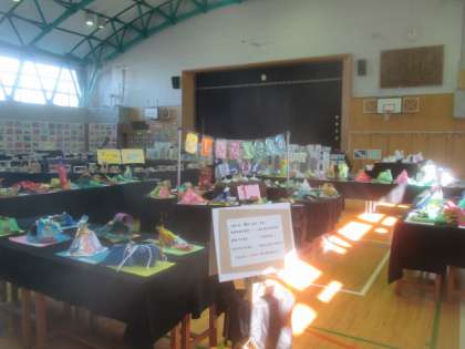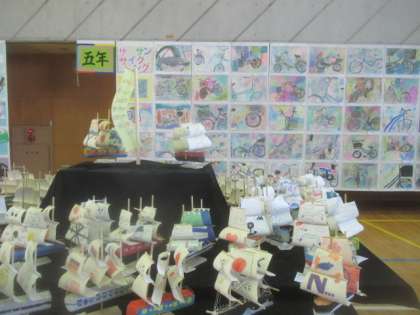 明日から開催される展覧会の準備が完了しました。各学年の作品が体育館に搬入され、きれいに展示されています。どの学年も見どころ満載です。