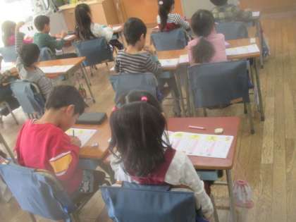 2組の今日の朝の時間は、漢字の学習をしました。ドリルを使って新しい漢字を練習します。お手本をよく見てノートに繰り返し書いて覚えます。みんな集中して取り組んでいました。