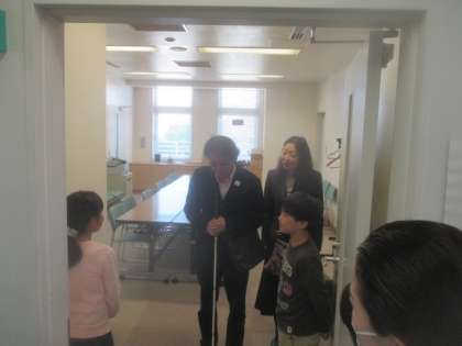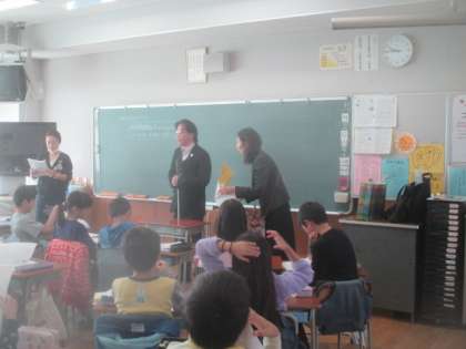 4年生は総合的な学習の時間で、世田谷区視力障害者福祉協会の方をゲストティーチャーにお招きし、障害者福祉についてのお話をしていただきました。今日は、目の不自由の方の実体験をうかがいました。子どもたちは、先日のアイマスク体験を生かして、ゲストティーチャーを教室までご案内するなど、楽しく交流させていただきました。