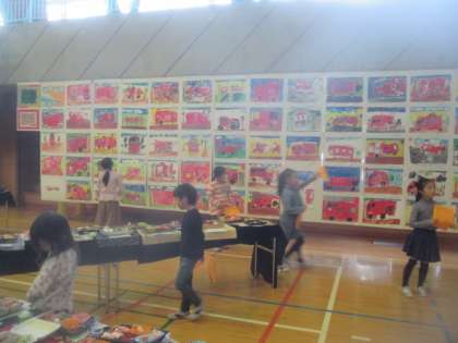 学校公開期間と同時に、今日から2日間、展覧会も開催されます。初日の今日は、各学年で授業時間を使って展示された作品を鑑賞しました。子どもたちは、他学年の作品もじっくり鑑賞して、感想を書きとめていました。